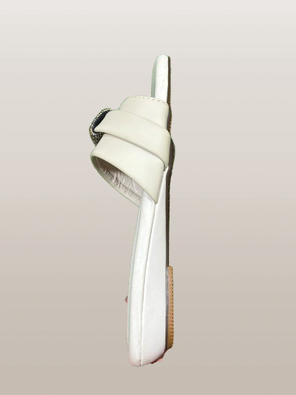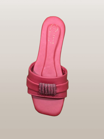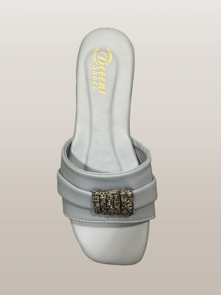 Elegant Women’s Square Toe Slip-On Sandals – Chic Flats with Rhinestone Buckle Accent | Comfortable Summer Footwear