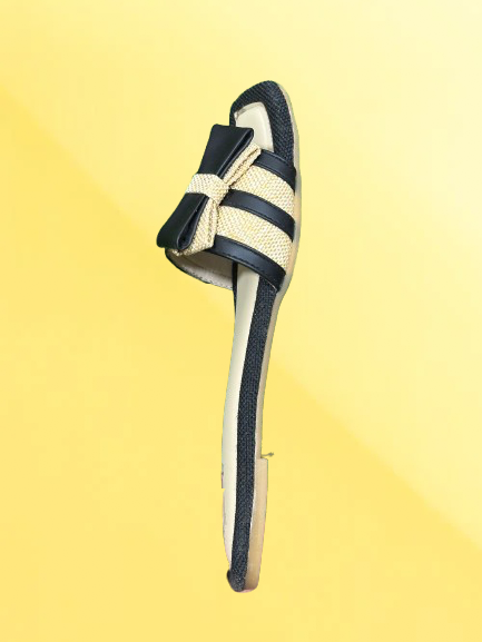 Stylish Women’s Slide Sandals – Square Toe Flats with Bow Detail | Comfortable Summer Slip-On Shoes